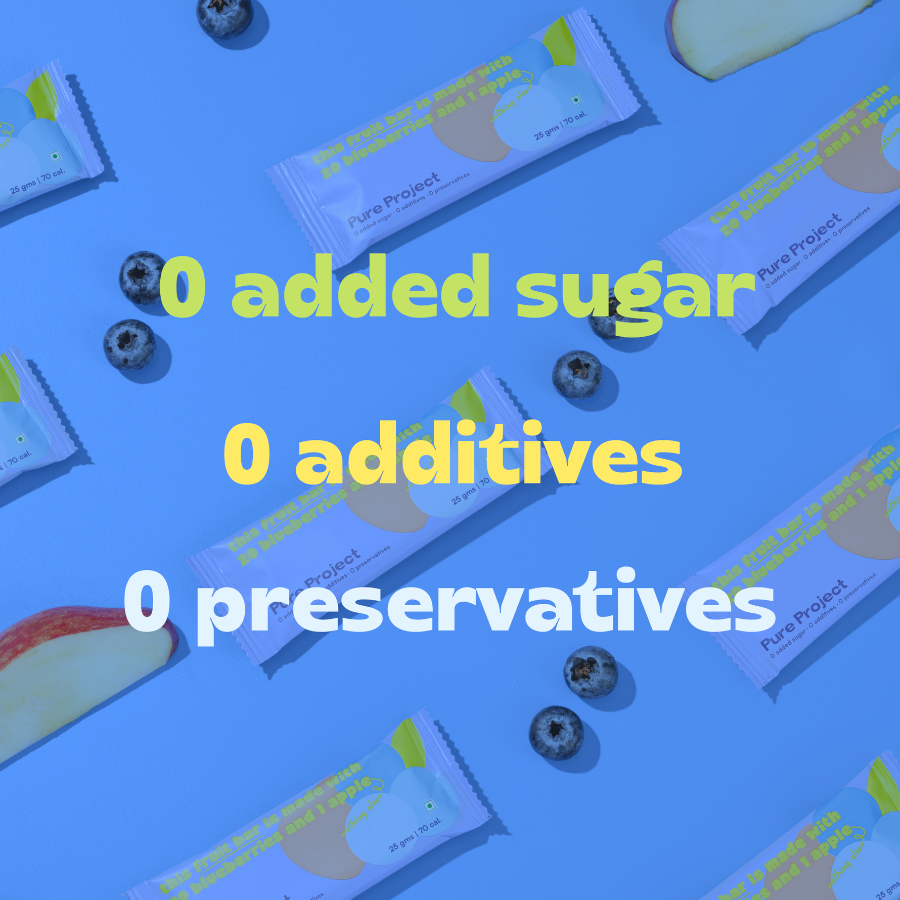 Just fruit. We slow-dry and blend whole fruits to make a naturally sweet, chewy bar. That’s it—0 additives, 0 preservatives, 0 added sugar.
