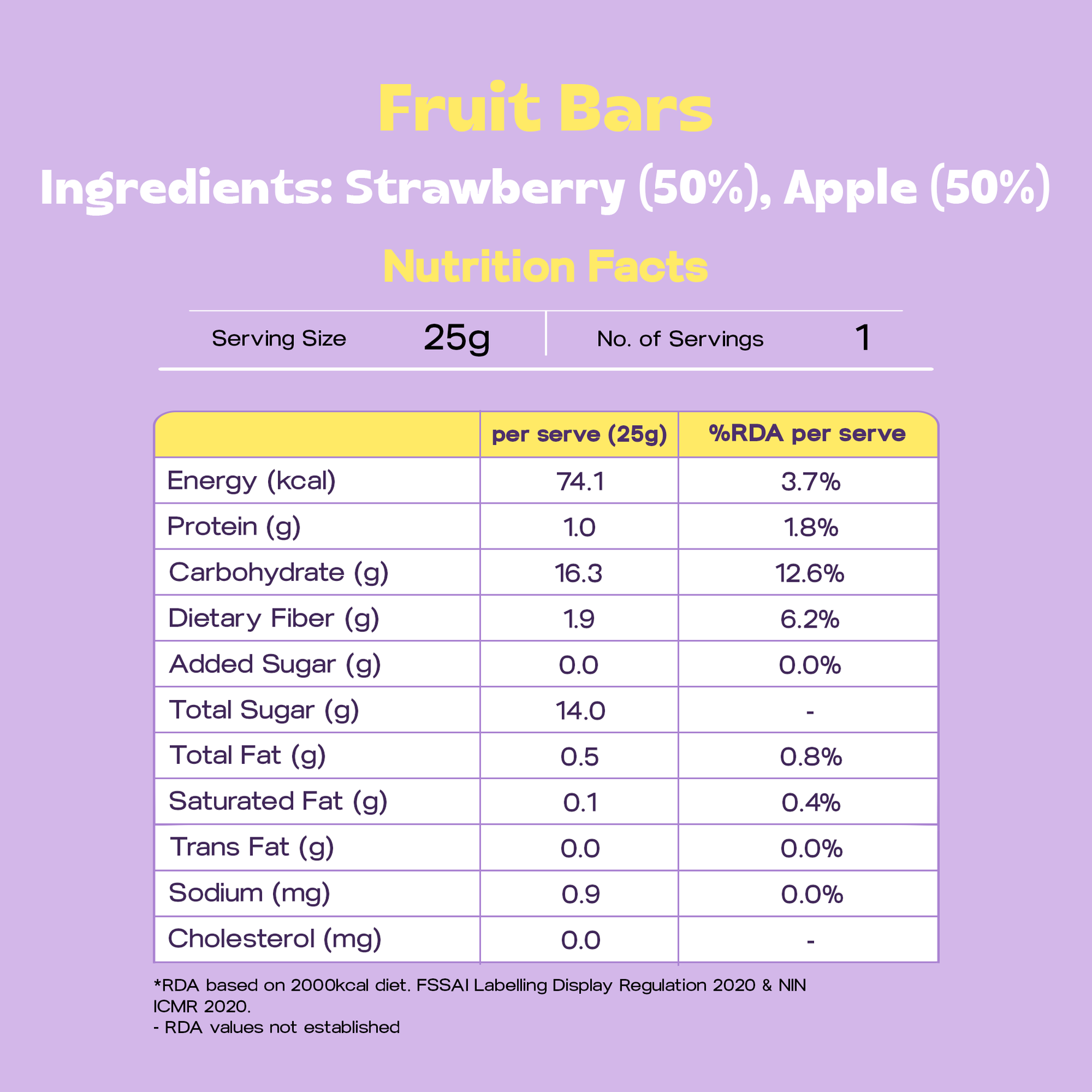 Yes. Each bar packs in 150–170g of fruit, giving you the natural fiber and energy of a full serving of fruit.