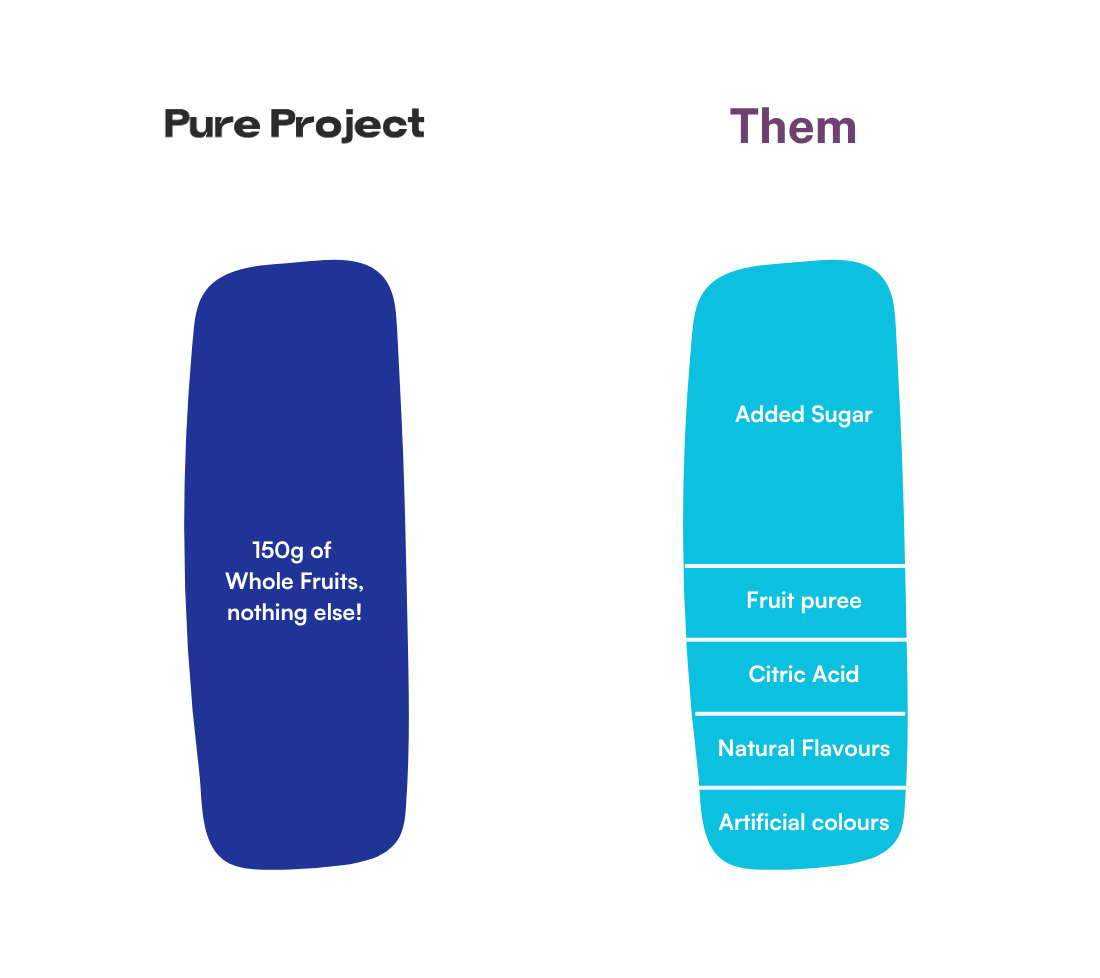 Just fruit. We slow-dry and blend whole fruits to make a naturally sweet, chewy bar. That’s it—0 additives, 0 preservatives, 0 added sugar.